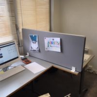 La fermeture éclair, couplé aux pieds à roulette, créé un paravent amovible.