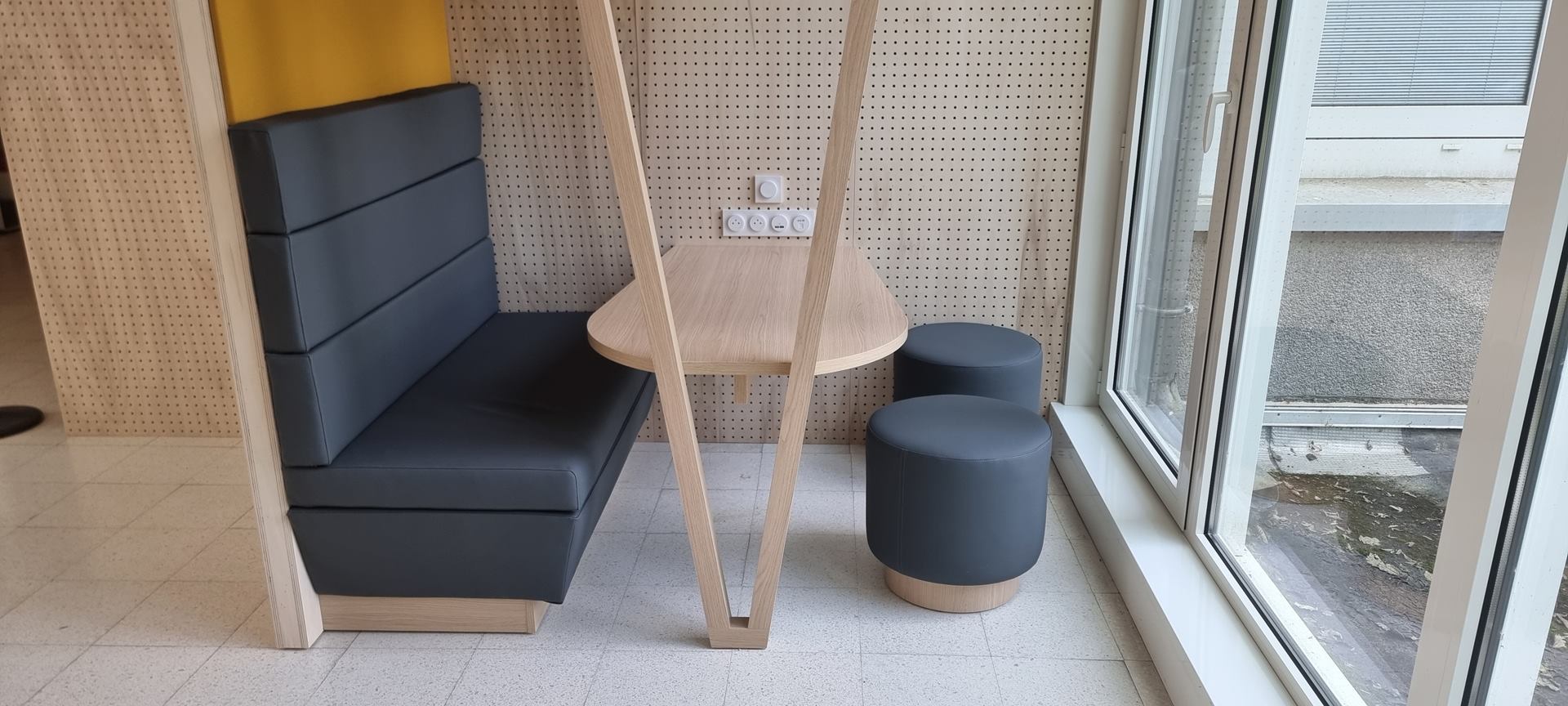Les banquettes en Feutre Camira ou tissu Amara sont sur https://silencio-acoustique.com/produit/banquette_cat2/